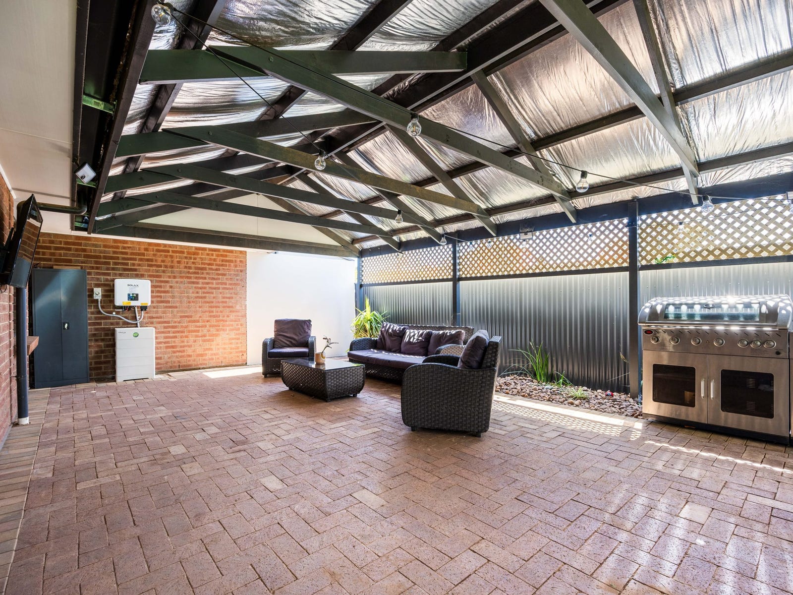 - Neutral tones throughout provide a blank canvas for your personal style. Step outside to a huge paved alfresco area with direct access from the living room, a secure lawn perfect for kids or pets, and a 5.5m x 2.9m garden shed with rear lane access.